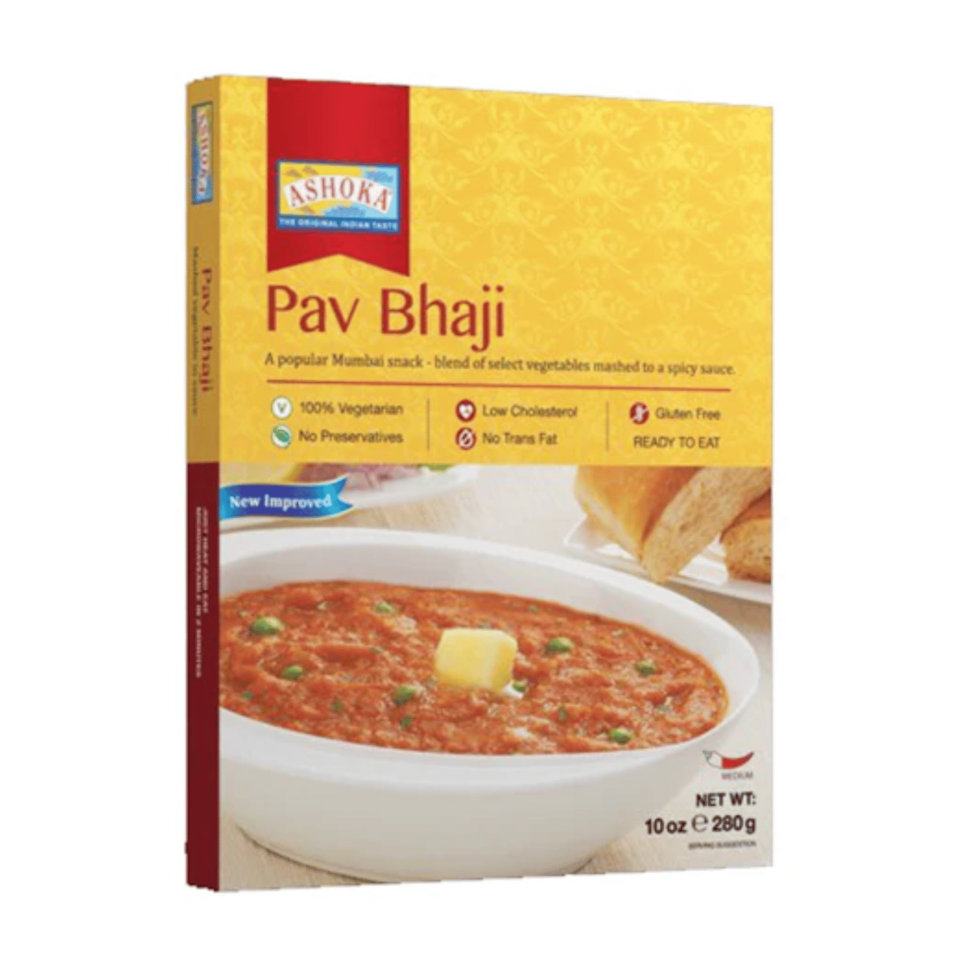Ashoka Pav Bhaji is a ready-to-eat version of the popular Indian street food made with mashed vegetables cooked in a spiced, flavorful gravy, served with buttered pav (bread rolls). Here's how you can heat it: