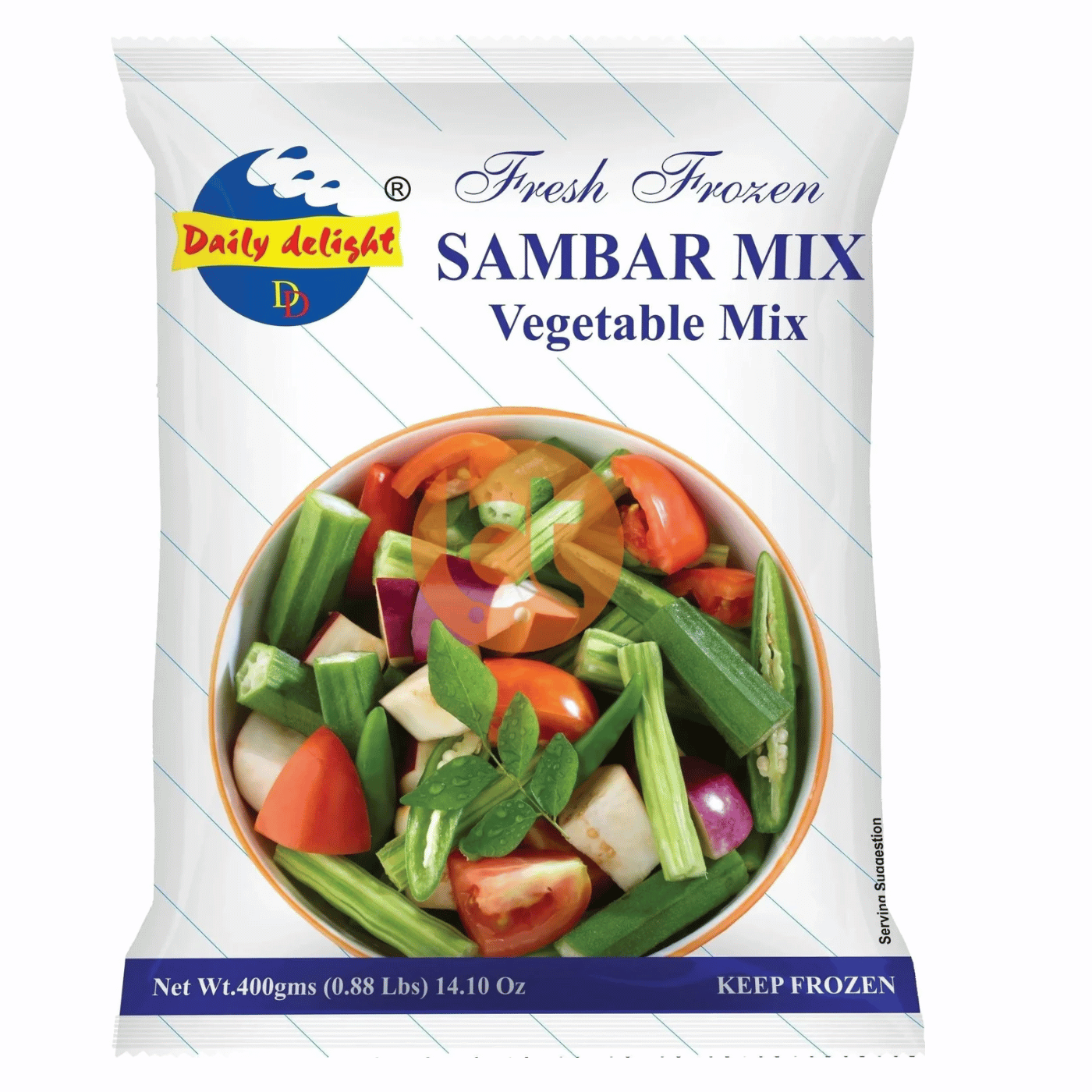 Frozen Sambar Mix is a convenient pre-packaged mixture of vegetables and spices used to prepare Sambar, a popular South Indian lentil-based stew. Sambar is typically served with idli, dosa, rice, or vada and is made by simmering lentils, vegetables, and spices in a tamarind-based broth.