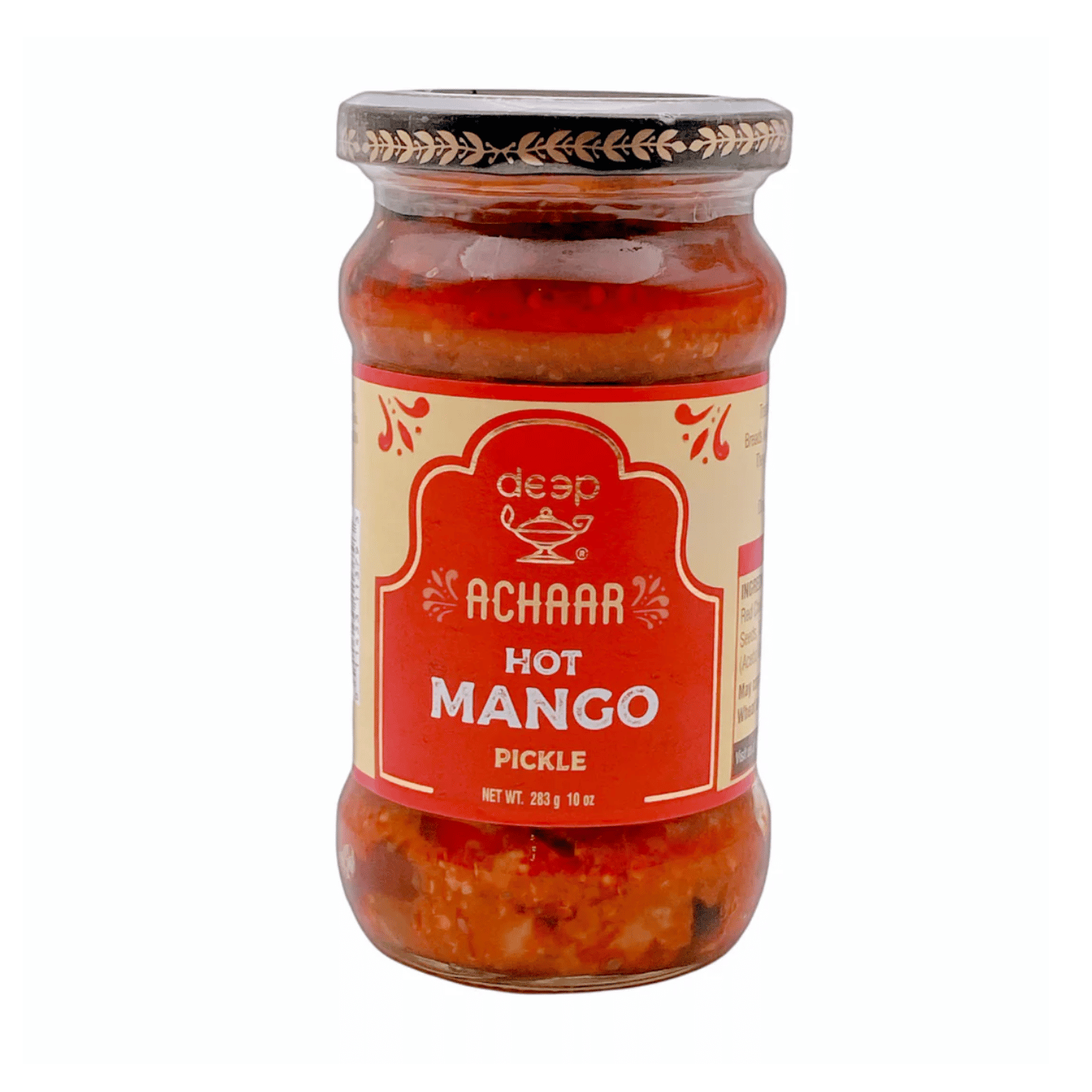 Deep Mango Pickle Hot is a spicy and tangy Indian pickle made with raw mangoes, spices, and oil. It's known for its intense heat and flavorful punch, and it pairs perfectly with rice, dal, parathas, or any Indian meal.