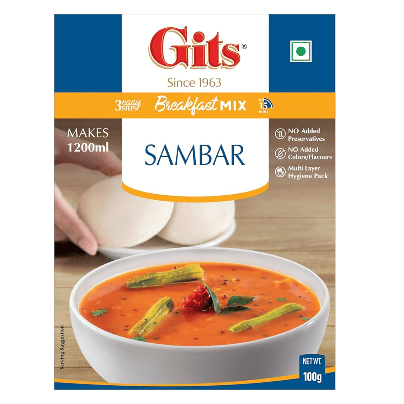 GITS Sambar Mix is a convenient and ready-to-use mix that allows you to prepare a delicious, flavorful South Indian sambar in no time. Sambar is a savory, spicy, and tangy lentil-based stew made with vegetables, tamarind, and a blend of aromatic spices, often served with rice, dosas, idlis, or vadas.