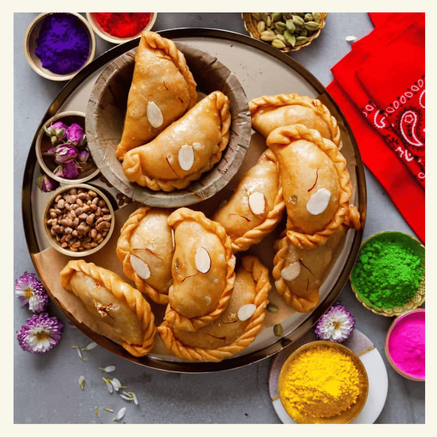 Gujiya is a popular Indian sweet typically prepared during festivals like Holi and Diwali. It's a type of deep-fried pastry filled with a sweet stuffing made of khoya (mawa), dry fruits, and coconut. Gujia is crispy on the outside and soft on the inside, offering a delightful balance of textures.
