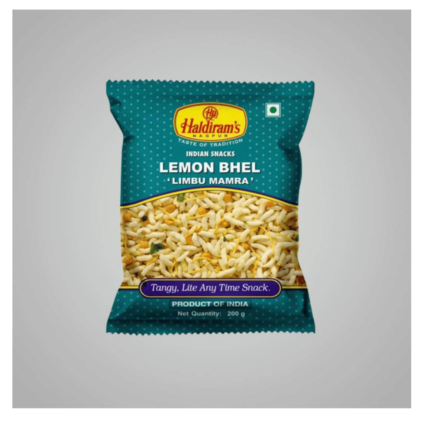 Haldiram's Lemon Bhel is a tangy and flavorful snack that is a variation of the classic bhel puri, featuring puffed rice, crispy sev, and a mixture of other crunchy ingredients, all tossed together with a zesty lemon dressing. The bhel is typically seasoned with spices like black salt, cumin, and chat masala, and the lemon juice adds a fresh, tangy kick to the snack.