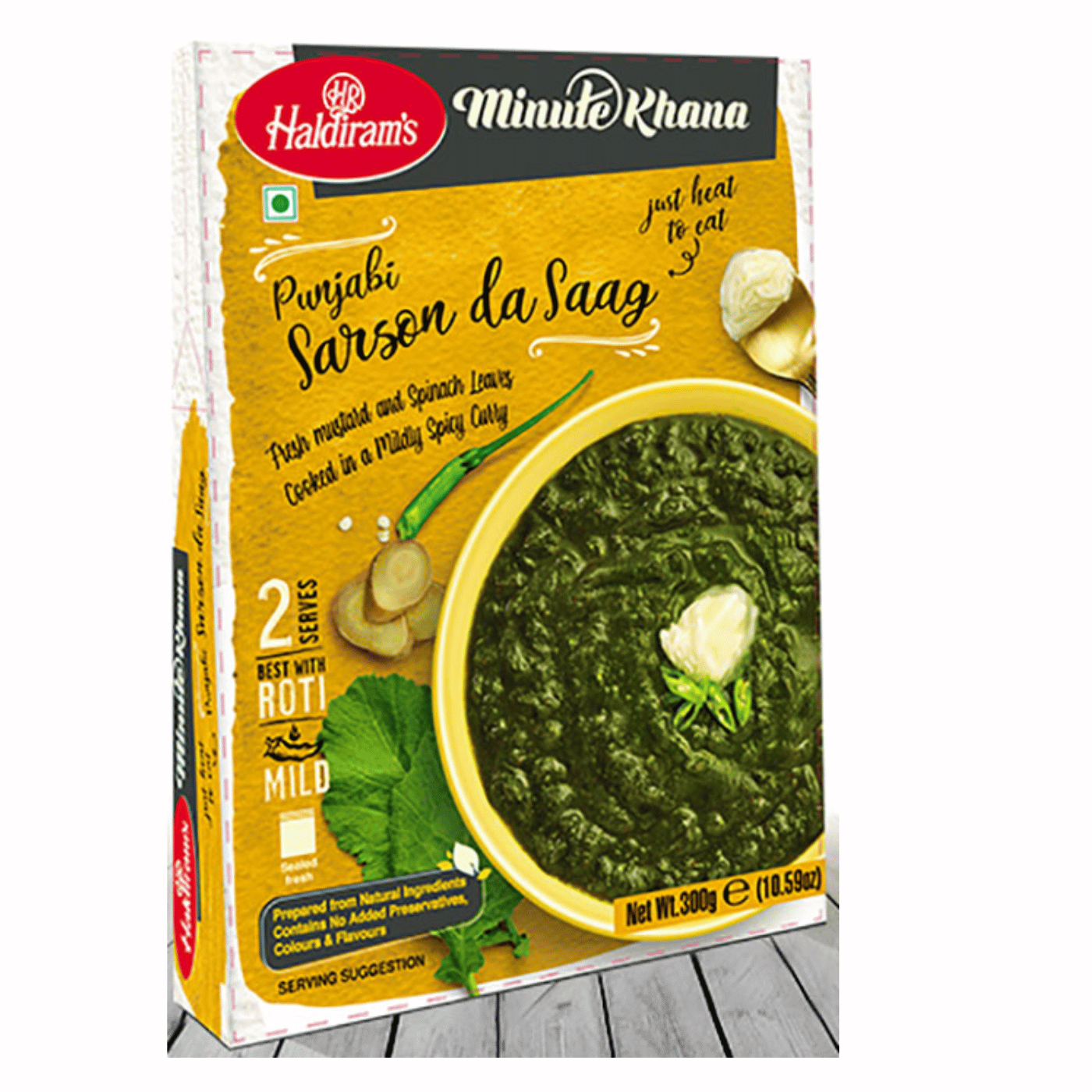 Haldiram's Ready-to-Eat Sarson Ka Saag is a traditional Punjabi dish made with mustard greens, spices, and herbs, often served with makki di roti (cornflatbread). It's a delicious, comforting dish that’s easy to prepare. Here's how you can heat it: