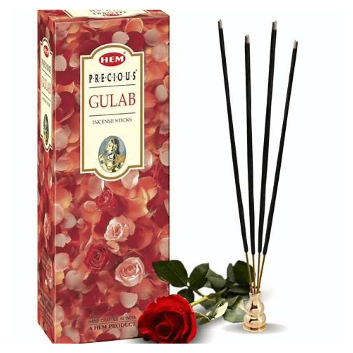 The HEM Precious Gulab Agarbatti (incense sticks) in 100g packs are widely available online, offering a fragrant rose aroma ideal for meditation, prayer, or creating a soothing atmosphere at home.