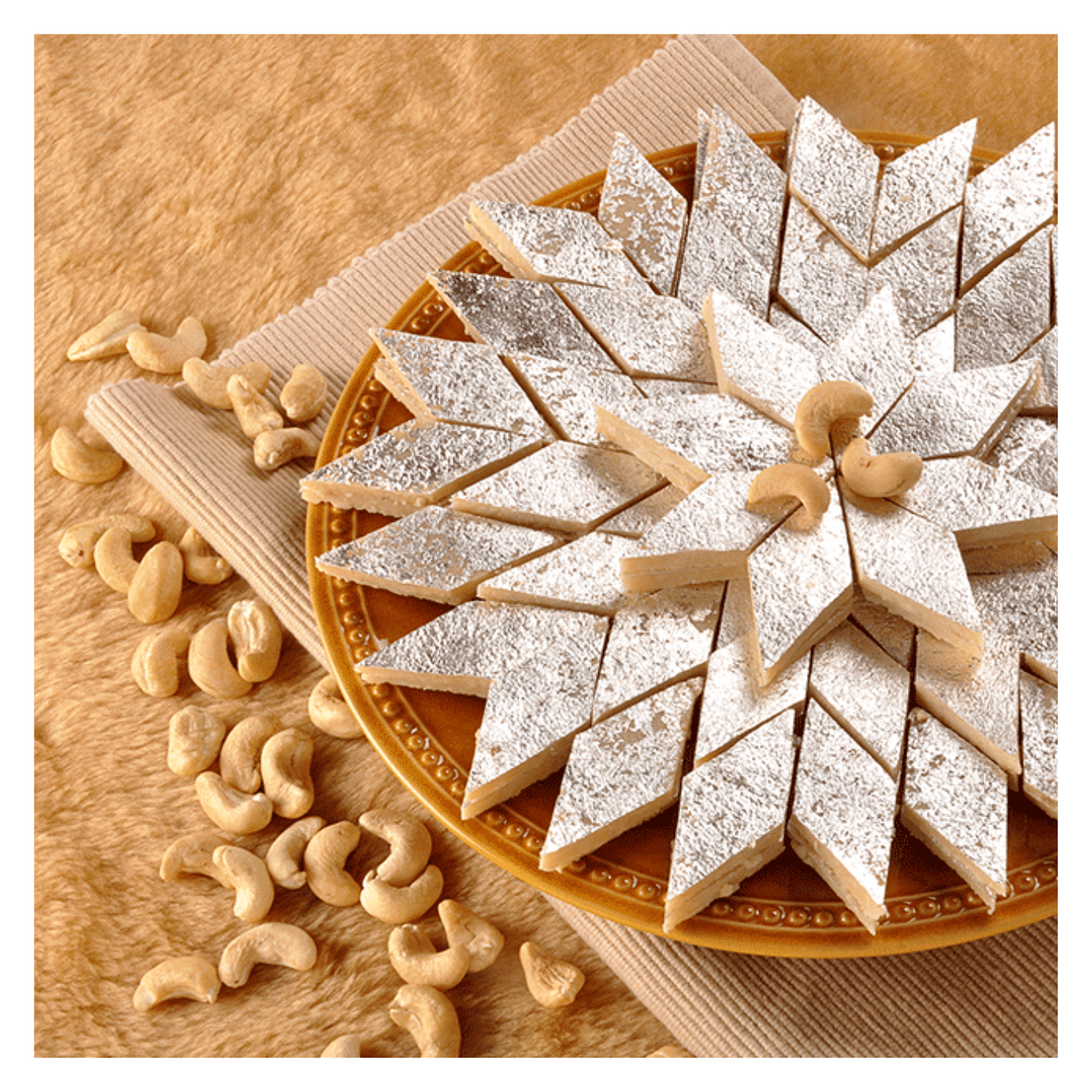 Kaju Katli, also known as Kaju Barfi, is a cherished Indian sweet that delights with its rich cashew flavor and smooth, melt-in-the-mouth texture. It's a popular choice during festivals like Diwali and special occasions, symbolizing celebration and joy.