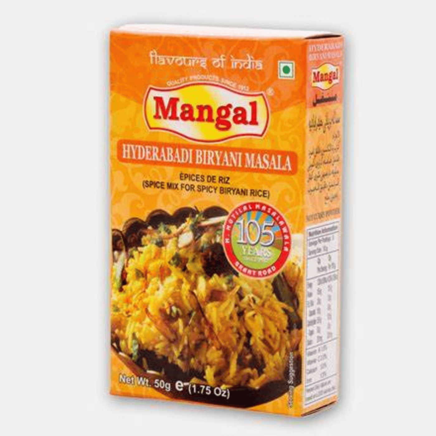 Mangal Hyderabadi Biryani Masala is a premium spice blend crafted to infuse your biryani with authentic Hyderabadi flavors. This masala is meticulously prepared by roasting and grinding a selection of whole spices, ensuring a rich aroma and depth of taste.