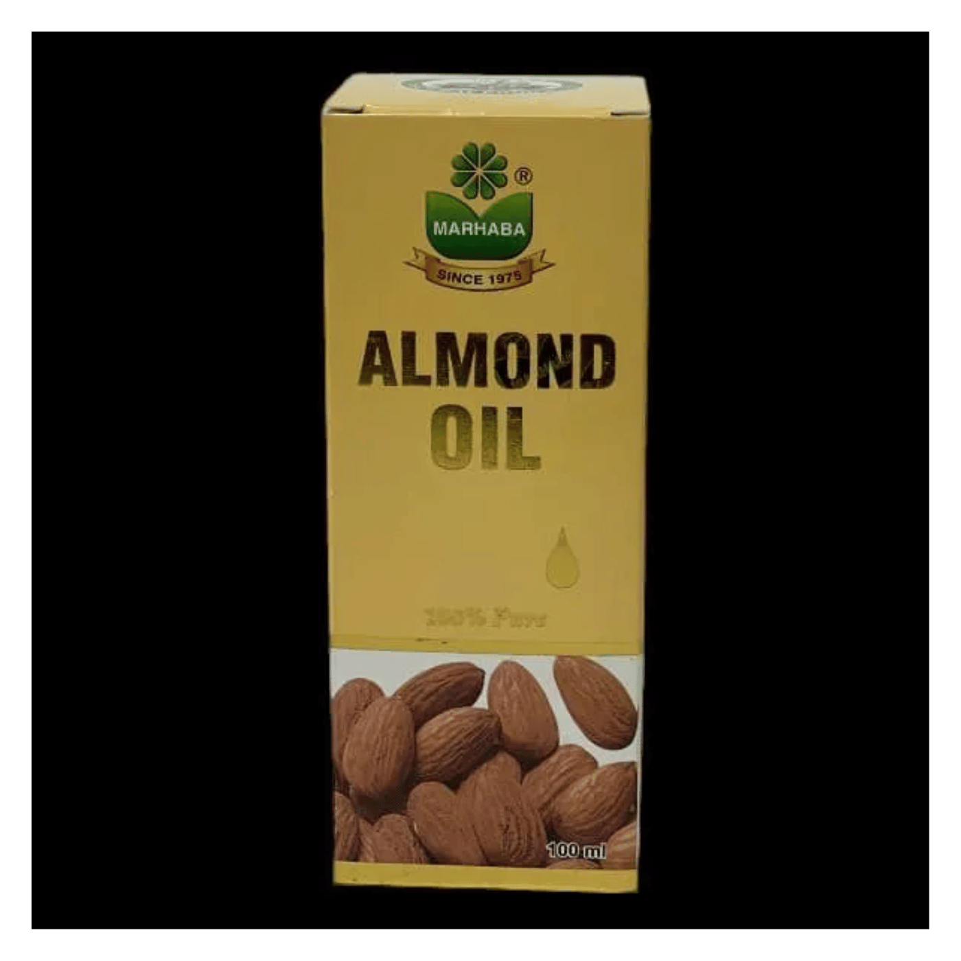 Marhaba Almond Oil is a versatile, 100% pure, cold-pressed oil produced by Marhaba Laboratories, renowned for its cosmetic and medicinal applications. Extracted from sweet almonds (Prunus amygdalus), this oil is celebrated for its fine texture, mild aroma, and rich nutrient profile.