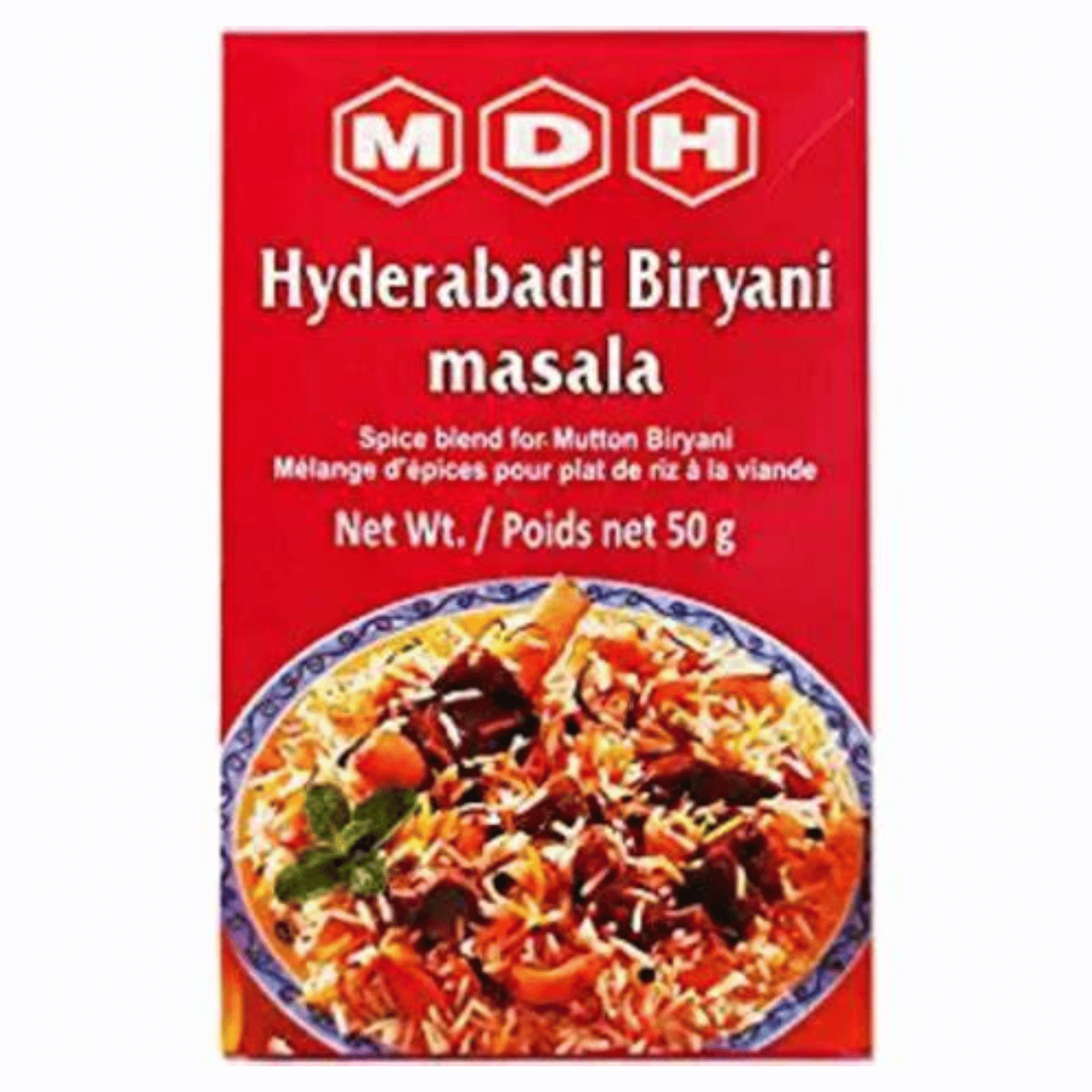 MDH Hyderabadi Biryani Masala is a pre-made spice blend designed to infuse your biryani with authentic Hyderabadi flavors. This blend is particularly crafted for mutton biryani but can also be used for chicken or vegetable versions.