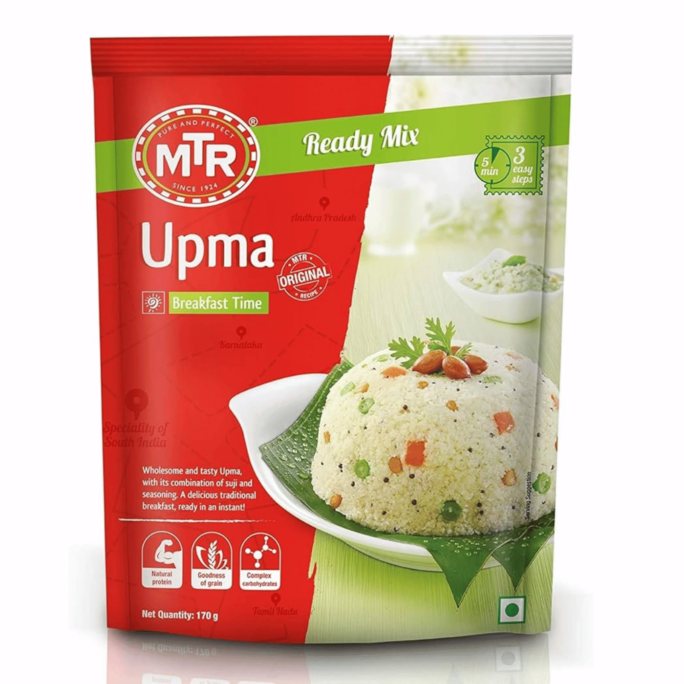 MTR Upma Mix is a convenient, ready-to-use mix that allows you to prepare Upma, a popular South Indian breakfast dish, in no time. Upma is made from semolina (rava), sautéed with vegetables and spices, making it a hearty and flavorful dish. With MTR Upma Mix, you can skip the preparation of individual ingredients and get a perfect dish in just a few easy steps.