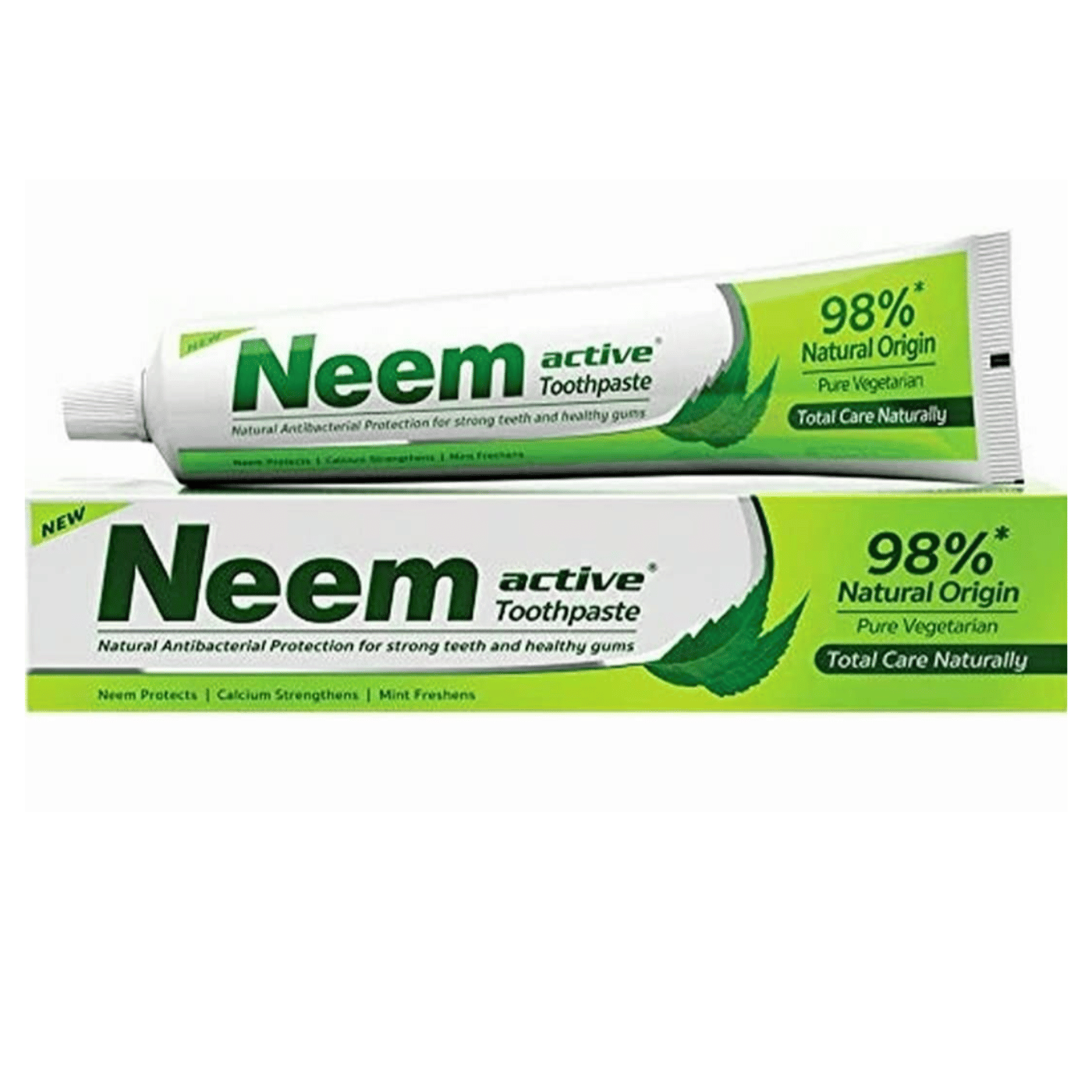 Neem Active Toothpaste is an Ayurvedic oral care product enriched with the natural germ-fighting properties of neem. It helps prevent cavities, bleeding gums, and inflammation, ensuring a clean mouth-feel and fresh breath throughout the day.