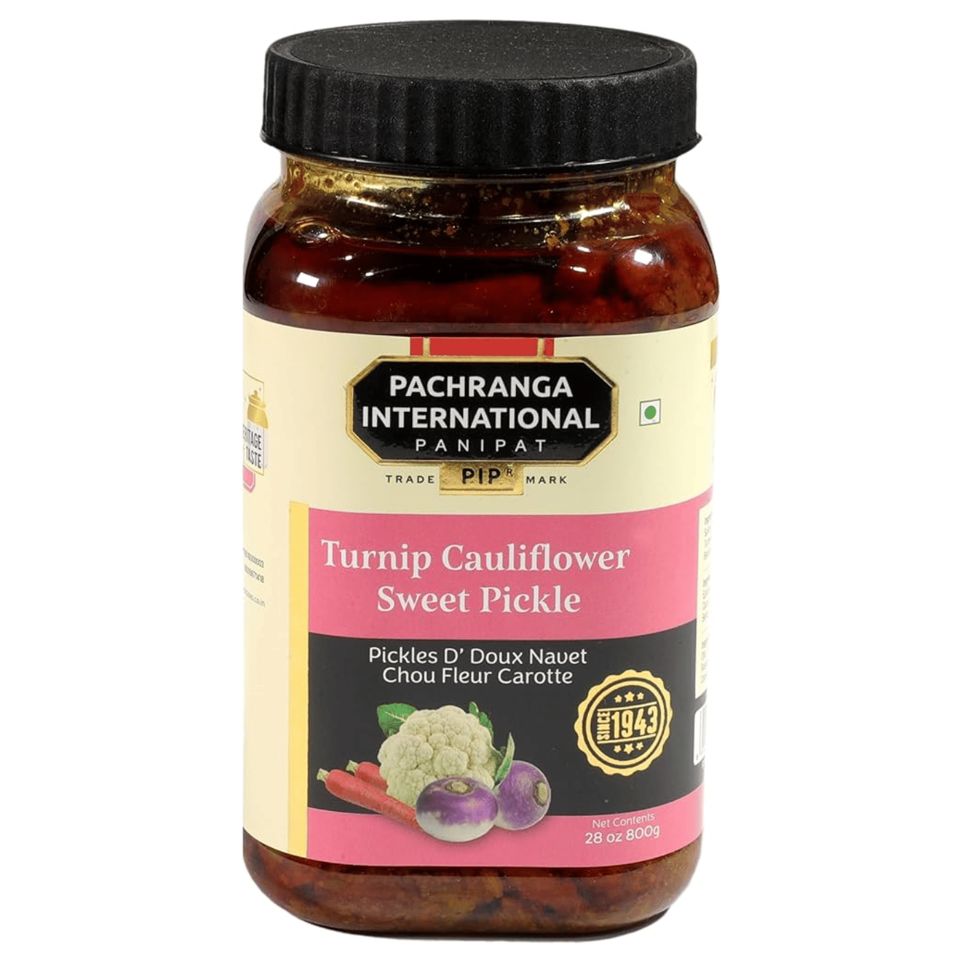 Panchranga Turnip Cauliflower Pickle is a flavorful Indian-style pickle made with a mix of turnip, cauliflower, and other ingredients, combining the earthy flavors of turnip and cauliflower with the tanginess of spices and mustard oil. "Panchranga" refers to the "five ingredients," and this pickle typically includes a mix of vegetables, spices, and oil, offering a balance of tang, spice, and crunch.