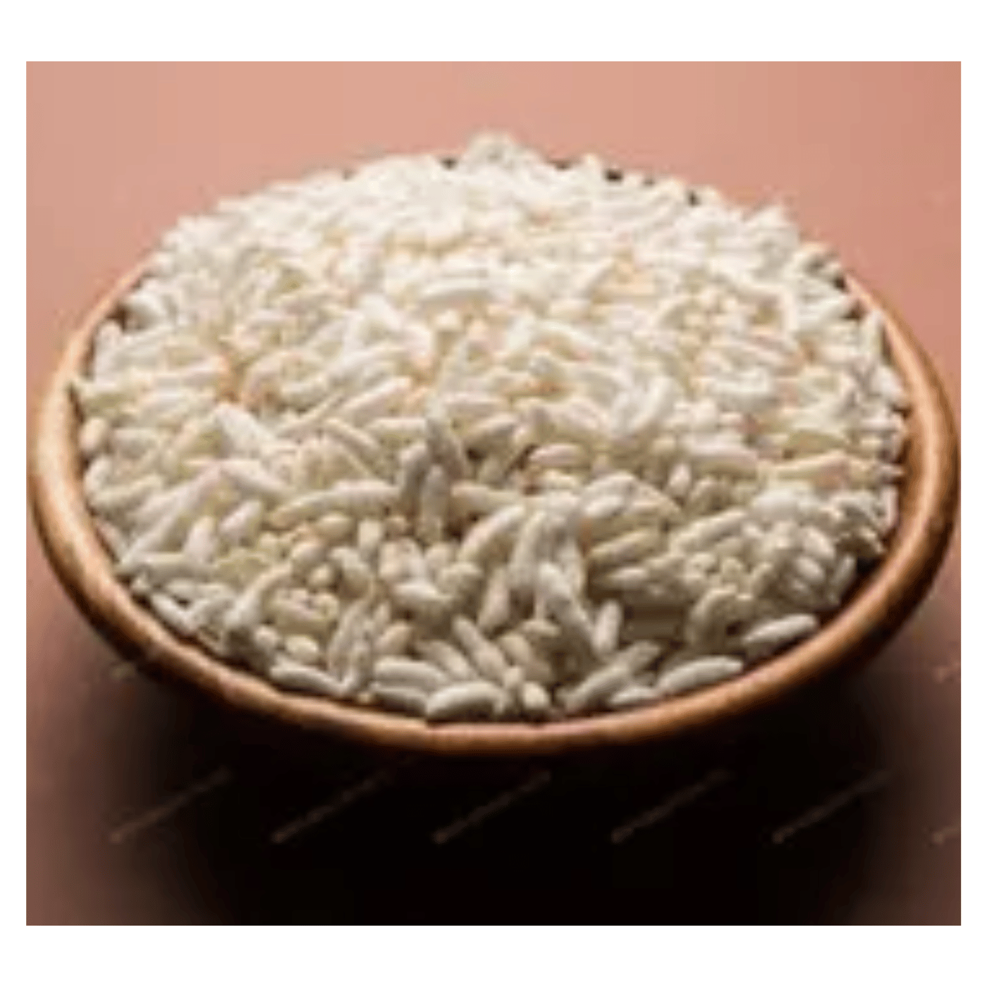 Mamra (also known as puffed rice or kurmura) is a type of light, crispy, puffed grain made from rice. It is a staple in Indian snacks and fasting foods, valued for its light texture, crunch, and digestibility.