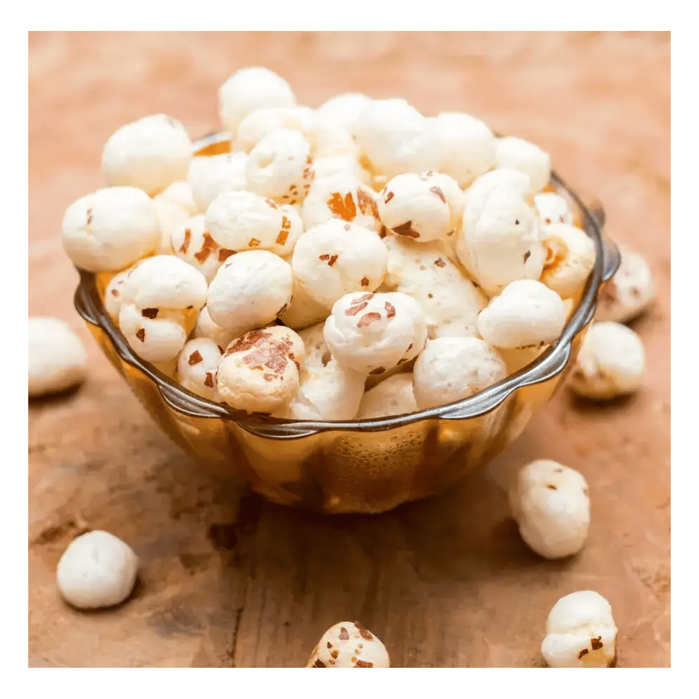 Phool Makhana, also known as fox nuts or lotus seeds, are the edible seeds of the Euryale ferox plant, a type of water lily native to India. They are widely used in Indian cuisine and Ayurvedic medicine, especially during fasting periods and as a healthy snack.