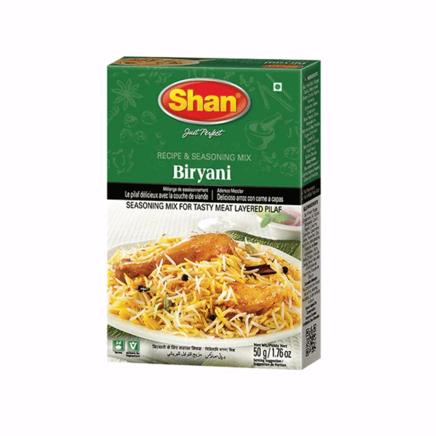Shan Biryani Masala is a premium spice blend designed to help you prepare authentic, flavorful biryani at home. This 50g packet is suitable for approximately 8 servings and is ideal for chicken, beef, lamb, or vegetable biryani.