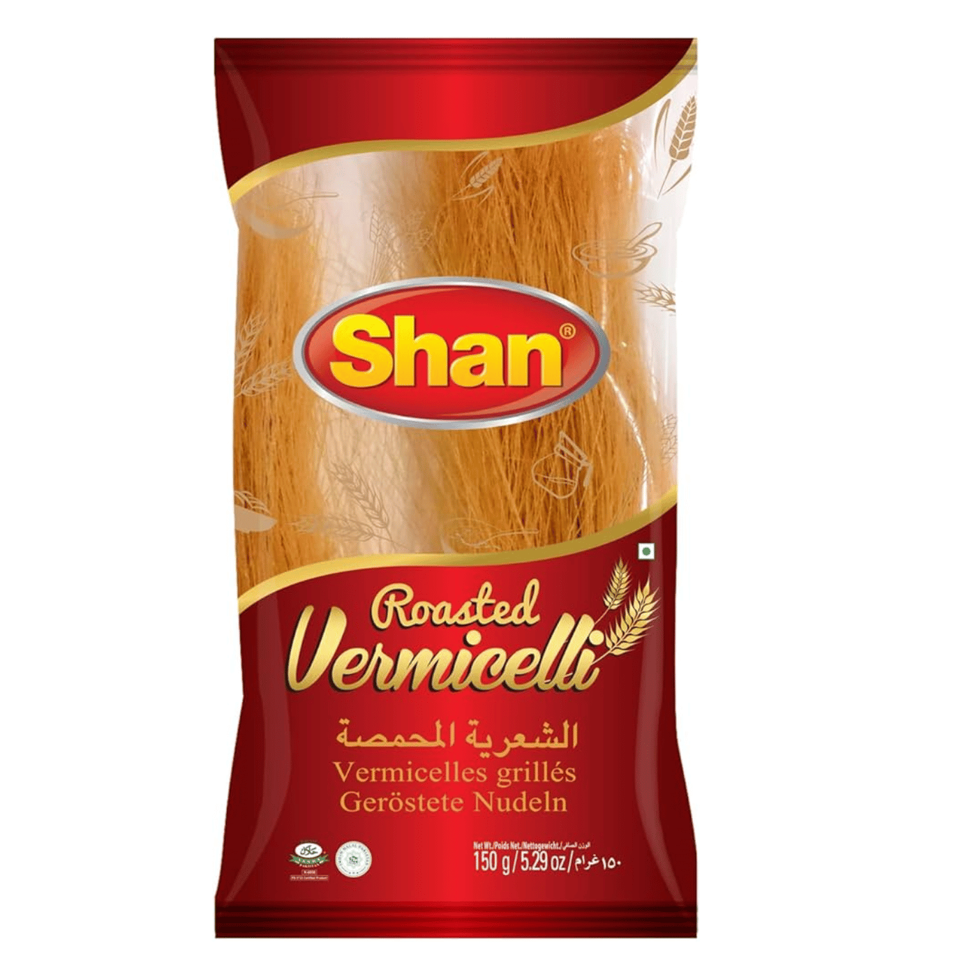 Shan Roasted Vermicelli is a pre-roasted, fine-textured wheat noodle product from Shan Foods, a well-known brand specializing in South Asian culinary products. It's commonly used in both sweet and savory dishes across Indian, Pakistani, and Burmese cuisines.