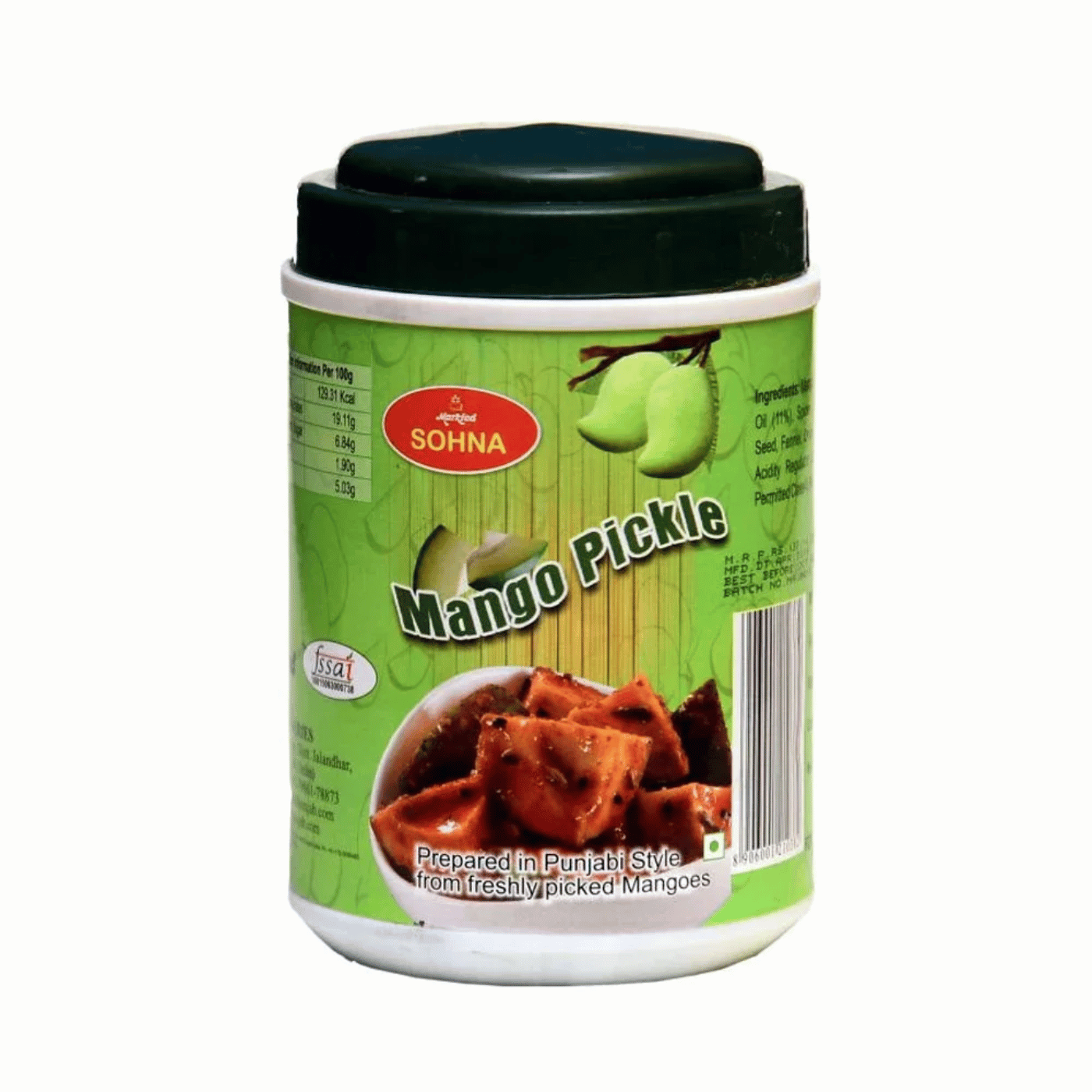 Sohna Mango Pickle is another beloved variety of mango pickle, known for its rich, tangy, and spicy flavor. This pickle is typically made with raw mangoes, mixed spices, and oil, offering a perfect combination of sourness from the mangoes and heat from the spices. Sohna is a well-known brand in South Asia for producing high-quality pickles, and their mango pickle is a popular choice for adding a zesty kick to meals.