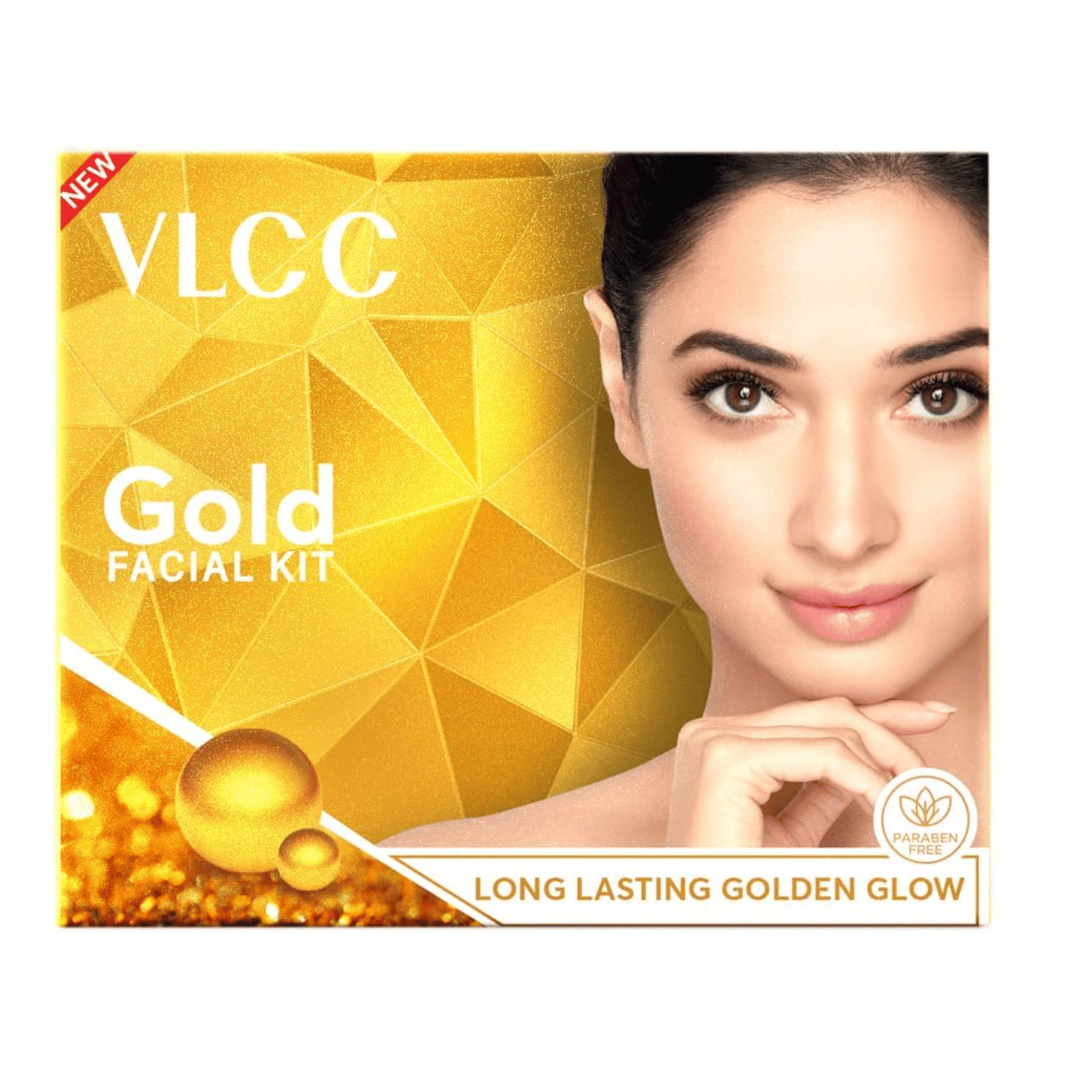 The VLCC Gold Facial Kit is a popular at-home skincare treatment designed to provide a radiant, youthful glow. Infused with 24K Gold Bhasma and enriched with natural ingredients like aloe vera, turmeric, and comfrey extract, this facial kit aims to cleanse, exfoliate, nourish, and moisturize the skin, enhancing its natural radiance.